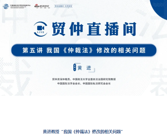 貿(mào)仲直播間-大師講堂系列課程第五講將于2021年6月10日(星期四)下午2時(shí),邀請(qǐng)貿(mào)仲資深仲裁員、中國政法大學(xué)全面依法治國研究院教授,中國國際法學(xué)會(huì)會(huì)長,中國國際私法研究會(huì)會(huì)長黃進(jìn)教授,講解“我國仲裁法修改的相關(guān)問題”。