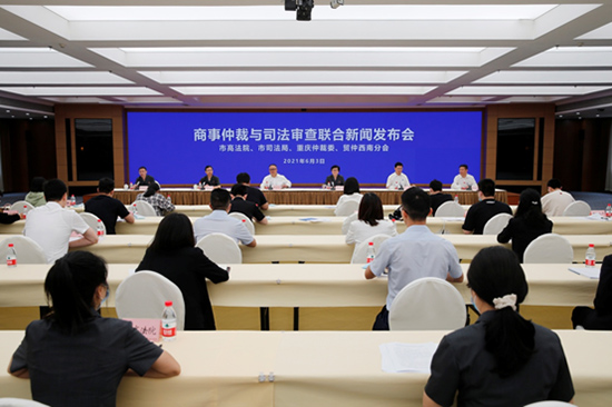 2021年6月3日,重慶市高級(jí)人民法院、重慶市司法局、重慶仲裁委員會(huì)、中國國際經(jīng)濟(jì)貿(mào)易仲裁委員會(huì)(貿(mào)仲)西南分會(huì)在重慶舉辦商事仲裁與司法審查聯(lián)合新聞發(fā)布會(huì),通報(bào)重慶商事仲裁和司法審查工作相關(guān)工作情況。