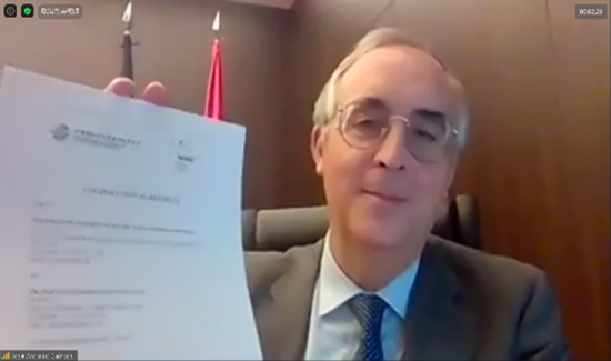 2021年7月8日,中國國際經(jīng)濟(jì)貿(mào)易仲裁委員會(huì)(CIETAC)與西班牙馬德里國際仲裁中心(MIAC)通過線上方式舉行了《合作協(xié)議》簽署儀式。貿(mào)仲副主任兼秘書長王承杰先生與馬德里國際仲裁中心主席José Antonio Caínzos先生分別代表雙方在《合作協(xié)議》上簽字。馬德里國際仲裁中心秘書長及馬德里律師協(xié)會(huì)國際關(guān)系負(fù)責(zé)人一同出席了本次儀式。
