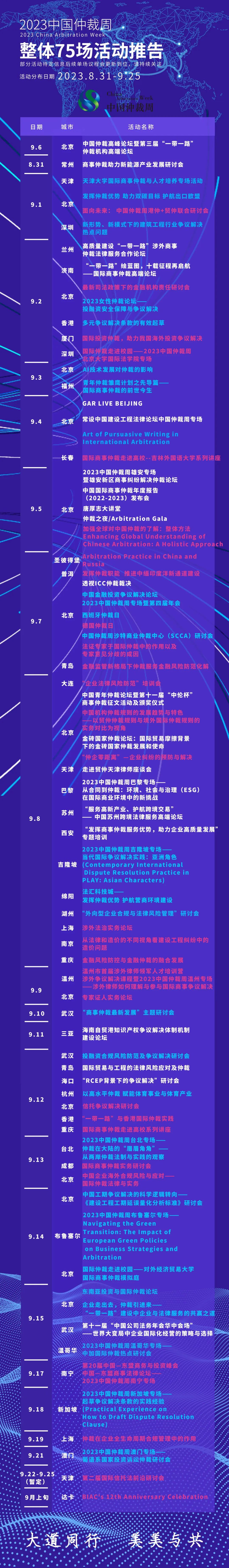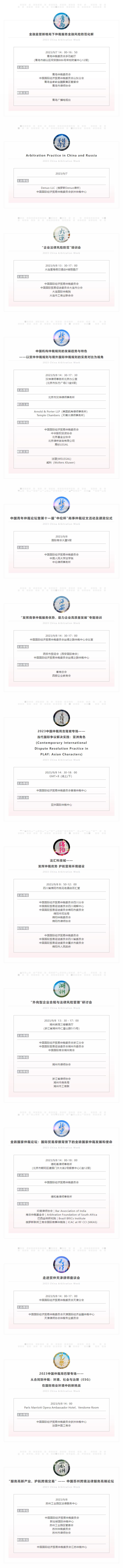 清風生,白云遏,臨川筆,彭澤樽。截至今日2023中國仲裁周整體75場活動逐場推告如下: