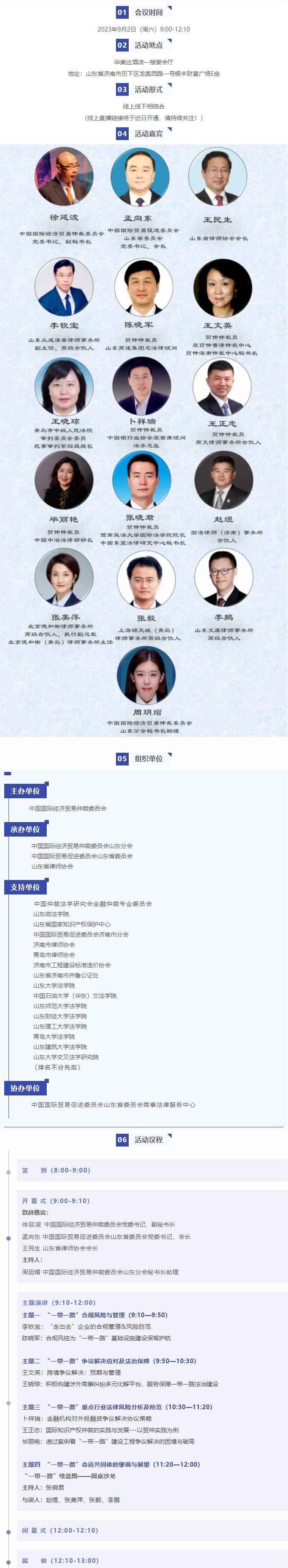 為加強“一帶一路”法治保障,提升風險防范和解決爭議的能力,茲定于2023年9月2日在山東濟南舉辦“‘一帶一路’繪藍圖,十載征程再啟航--國際商事仲裁高端論壇”。屆時,我們將在“一帶一路”鋪排的萬里畫卷上,在商事仲裁深耕的廣闊天地中,探討多個前沿主題,聚焦法律服務(wù)的多元化發(fā)展,現(xiàn)誠邀您蒞臨參會。