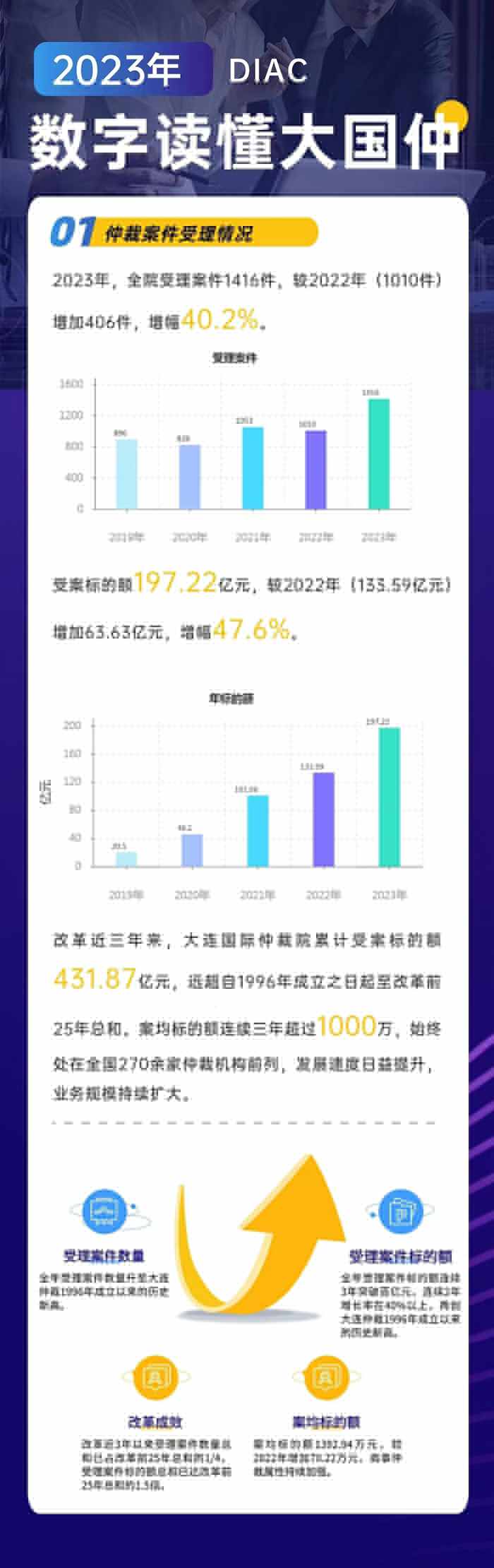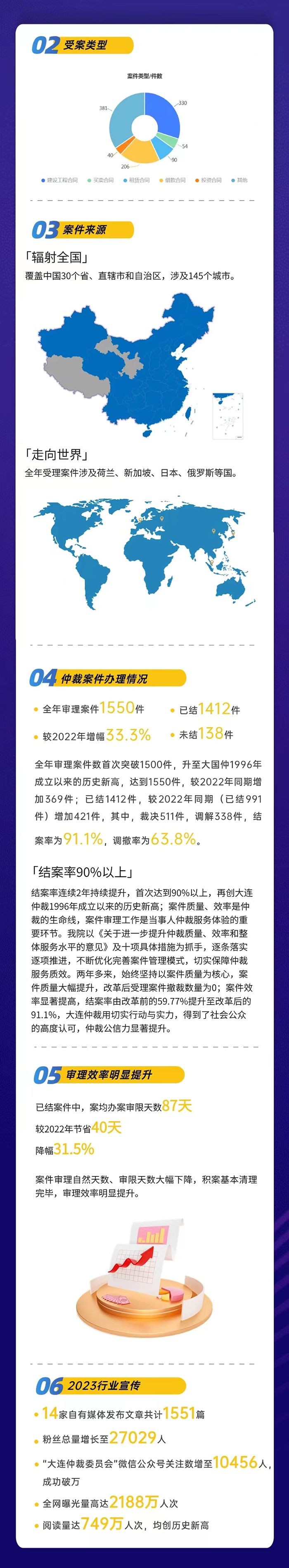 2023年,是大連國際仲裁院(大連仲裁委員會)順利完成體制機制改革的第三個年頭。大連國際仲裁院堅定不移在法治軌道上推進大連仲裁發(fā)展體系和能力現(xiàn)代化。全年仲裁業(yè)務實現(xiàn)跨越式發(fā)展,辦案質效全面提升,公共法律服務平臺的輻射面持續(xù)擴大,機構品牌的影響力和公信力不斷增強。在推進東北亞國際仲裁中心建設,營造優(yōu)質的法治化營商環(huán)境,擦亮“大連仲裁”的金字招牌上邁出堅實步伐。
