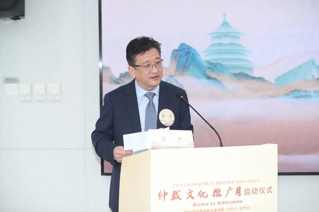 郭衛(wèi)在致辭中表示,仲裁文化是提升仲裁公信力的重要源泉,為仲裁機構(gòu)建設(shè)注入內(nèi)生動力,并為仲裁從業(yè)人員提供智識支持。在仲裁法頒布30周年之際,啟動仲裁文化推廣月活動正當其時。北京律協(xié)一直支持并積極推動首都仲裁事業(yè)的發(fā)展,北京律協(xié)商事仲裁法律專業(yè)委員會是全國首家且最大規(guī)模的仲裁專委會,代表了律師行業(yè)中先進的仲裁力量。北京律師也以專業(yè)能力強、職業(yè)素養(yǎng)高在業(yè)內(nèi)享有盛譽。通過與北京律協(xié)共同舉辦仲裁文化推廣月活動將會在相當大的范圍內(nèi)弘揚傳播仲裁文化。同時,他表達了對未來的期待,希望通過仲裁文化推廣月期間的一系列豐富、專業(yè)活動,邀請各界共同參與,以多元視角推出一套推廣仲裁文化的“組合拳”。他強調(diào),當前我國正積極打造國際一流仲裁機構(gòu)和建設(shè)國際商事仲裁中心,通過仲裁文化推廣月這一平臺,借助各界同仁對仲裁文化的深度思考,提煉出國際仲裁文明的共通元素,共同構(gòu)建以中國文化底蘊為基礎(chǔ)的中國特色仲裁文化。在為仲裁機構(gòu)加強自身文化建設(shè)提供思考的同時,推動中國仲裁走出一條承載中國仲裁文化基因、吸納世界仲裁制度營養(yǎng)的健康發(fā)展之路。