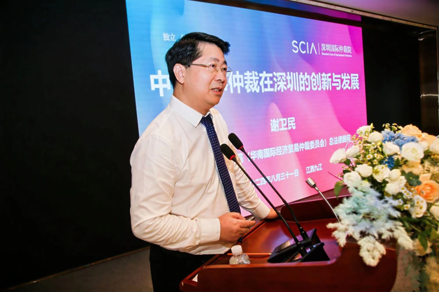 圖為深圳國(guó)際仲裁院總法律顧問(wèn)謝衛(wèi)民發(fā)言