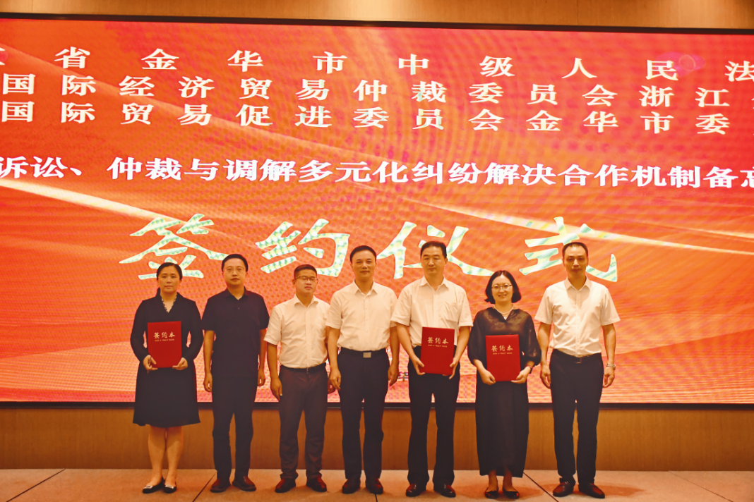 為公平、高效、便捷化解各類商事糾紛,貿(mào)仲浙江分會(huì)與金華市中級(jí)人民法院、金華市貿(mào)促會(huì)共同推進(jìn)建立行之有效的訴訟、仲裁、調(diào)解對(duì)接與糾紛多元化解機(jī)制,在本次活動(dòng)中簽署《關(guān)于訴訟、仲裁與調(diào)解多元化糾紛解決合作機(jī)制備忘錄》。各方將進(jìn)一步探索和創(chuàng)新工作體制,完善多元化商事爭(zhēng)議服務(wù)體系,打造法治化、國際化、專業(yè)化營商環(huán)境,為金華市企業(yè)開展國際經(jīng)貿(mào)業(yè)務(wù)保駕護(hù)航。