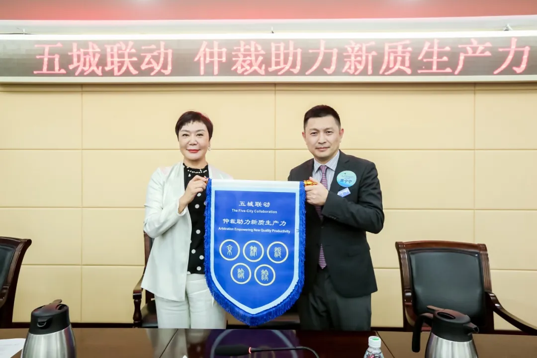 活動(dòng)最后舉行了仲裁業(yè)務(wù)交流會(huì)主辦地交接儀式。北京市律師協(xié)會(huì)副會(huì)長張麗霞將代表此次“五城聯(lián)動(dòng),仲裁助力新質(zhì)生產(chǎn)力”活動(dòng)的旗幟交付給上海市律師協(xié)會(huì)副會(huì)長黃寧寧。