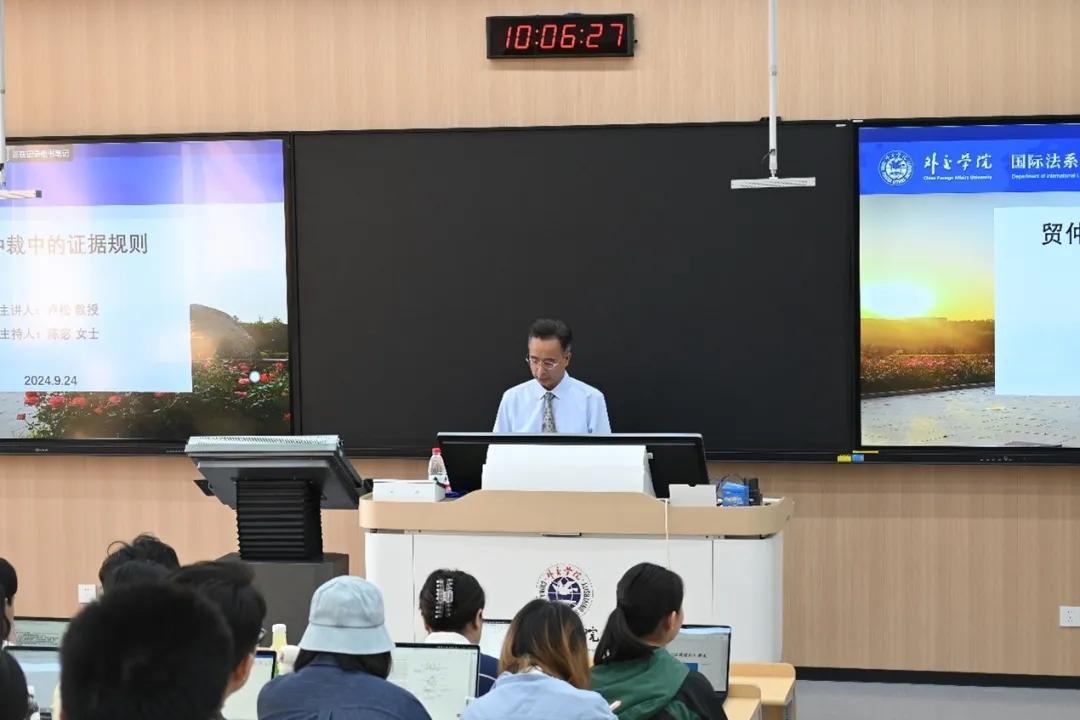 在講座中,主講人盧松教授,作為外交學(xué)院國際法系的杰出校友和貿(mào)仲《證據(jù)指引》的主要制訂者與修訂者,憑借其深厚的法學(xué)理論功底與多年的仲裁實務(wù)經(jīng)驗,為聽眾帶來了一場全面而深入的貿(mào)仲仲裁證據(jù)規(guī)則解析。盧教授首先強調(diào)了證據(jù)規(guī)則在仲裁過程中的核心地位,并結(jié)合具體案例,生動闡釋了證據(jù)如何影響仲裁結(jié)果的公正性與合理性。而后,盧松教授詳細(xì)介紹了貿(mào)仲仲裁中證據(jù)規(guī)則的制定背景、發(fā)展歷程及主要內(nèi)容,逐一解析了各項條款的具體含義,重點講解了舉證責(zé)任、證據(jù)形式、證據(jù)交換與質(zhì)證、證據(jù)保全等主要內(nèi)容,并通過實際案例展示了這些規(guī)則在仲裁實踐中的應(yīng)用場景與操作細(xì)節(jié)。