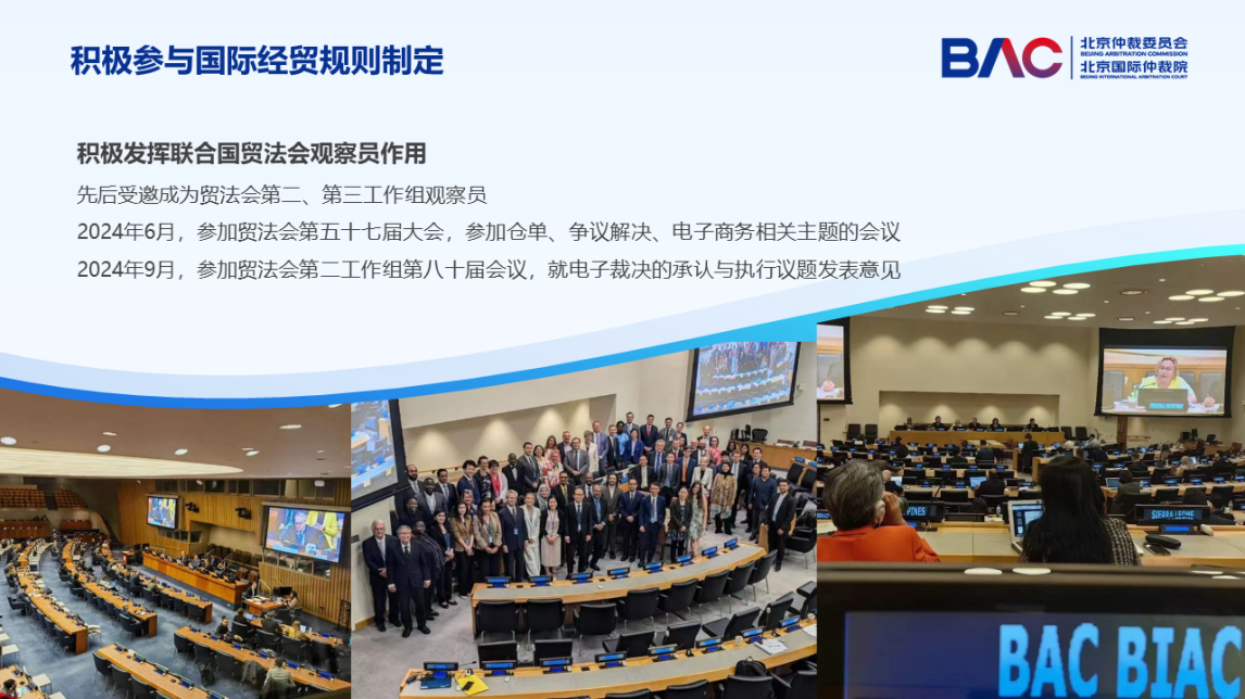 在全球化的背景下,北仲積極發(fā)揮聯(lián)合國貿(mào)法會觀察員作用,參與國際經(jīng)貿(mào)規(guī)則制定,不斷貢獻(xiàn)自己的研究成果和實(shí)踐經(jīng)驗(yàn),持續(xù)在國際舞臺發(fā)出中國聲音,展現(xiàn)中國仲裁機(jī)構(gòu)專業(yè)、開放、包容的國際形象。