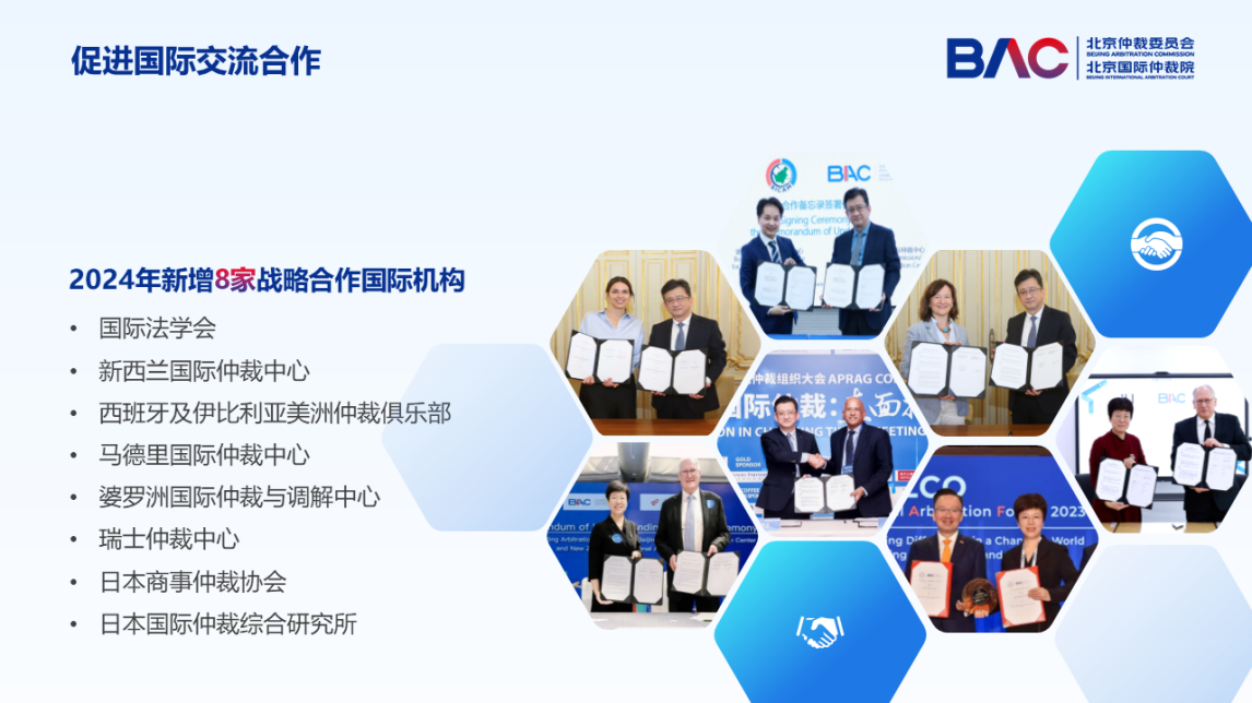 今年,新增戰(zhàn)略合作國際機(jī)構(gòu)8家,進(jìn)一步擴(kuò)大了北仲的國際朋友圈。通過以上活動(dòng),北仲不僅加強(qiáng)了國際交流與合作,也顯著提升了中國仲裁的國際影響力,為推動(dòng)全球仲裁法律服務(wù)發(fā)展做出積極貢獻(xiàn)。