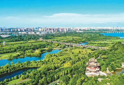 圖一:藍(lán)綠交織的永定河北京豐臺段。
