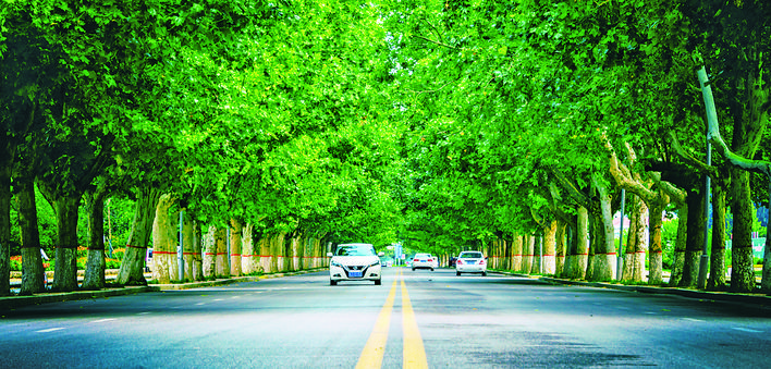 8月,酷暑難耐的盛夏,道路兩側(cè)隨處可見(jiàn)的高大樹(shù)木,形成濃濃樹(shù)蔭,為人們遮蔽刺眼的陽(yáng)光。走累了,街頭花壇邊的座椅可為你提供小憩的場(chǎng)所。旁邊,白的、粉的、黃的、紫的花兒,隨風(fēng)搖曳、翩翩起舞,任你盡情欣賞。