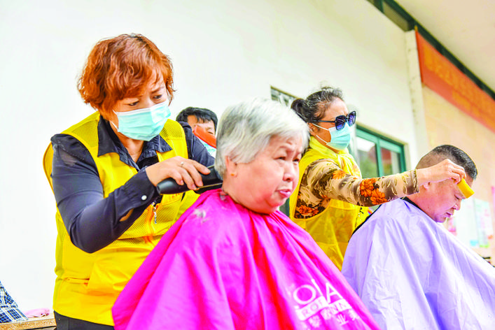 志愿者引導(dǎo)群眾報(bào)名參加公益培訓(xùn)。