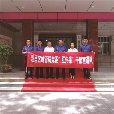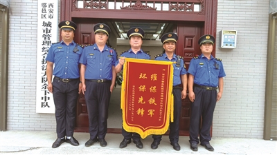 “我去蔣村街辦走親戚,在那里也發(fā)現(xiàn)了著裝整齊的城管隊(duì)員了!”8月,鄠邑區(qū)西街小學(xué)接孩子回家的家長們興高采烈地議論著。與西街小學(xué)一墻之隔的區(qū)城管局,此刻黨旗飄揚(yáng),格外耀眼。