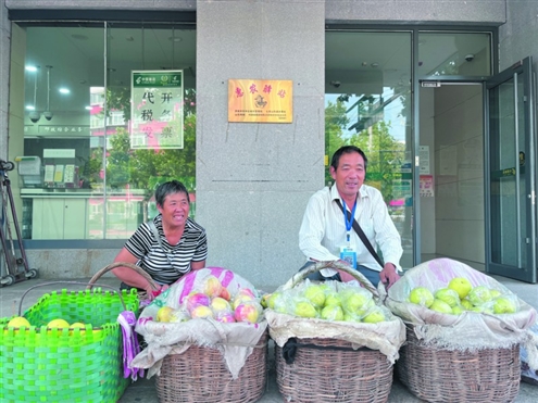 “利用營業(yè)所門口臺階上的空間,既可以讓提籃族擺攤,又不影響正常的交通。”在現(xiàn)場記者看到,一塊寫著“惠農(nóng)驛站”的牌子掛在了營業(yè)所的外墻上,牌子下面五六個(gè)提籃一字排開,兩位提籃族正在售賣。中國郵政儲蓄銀行七里山營業(yè)所負(fù)責(zé)人張超告訴記者,提籃族在這里售賣,既可以防曬避雨,還可以進(jìn)行休息,“我們?yōu)樗麄兲峁┟赓M(fèi)的飲水和充電服務(wù)。”