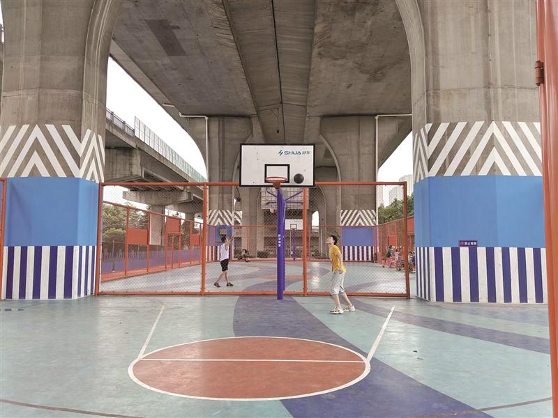 “高架樂(lè)園”不僅配備了嶄新的籃球場(chǎng)、棋牌廣場(chǎng)、文化舞臺(tái)、滑板場(chǎng)、乒乓球場(chǎng)、健身步道等文體設(shè)施,還在環(huán)境裝飾上融入泰伯藝術(shù)元素、新吳文化特征。經(jīng)過(guò)一番裝扮、布置,橋下變成了充滿活力的多彩走廊,明亮熱鬧的體育健身、文娛交流場(chǎng)所?!案脑旌?,橋下整體環(huán)境提升了?!泵刻於嫉健案呒軜?lè)園”練習(xí)跳舞的市民陳松開心地告訴記者,“政府為百姓辦了一件實(shí)篤篤的大好事?!?/p>