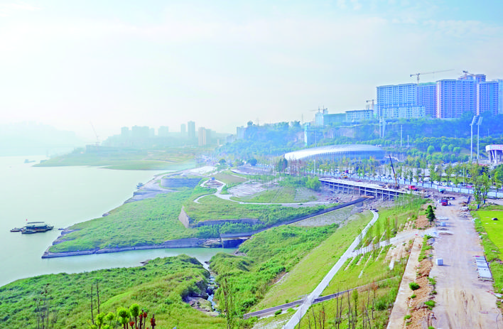 建設(shè)中的北濱公園中段,景觀錯落有致已現(xiàn)雛形。