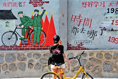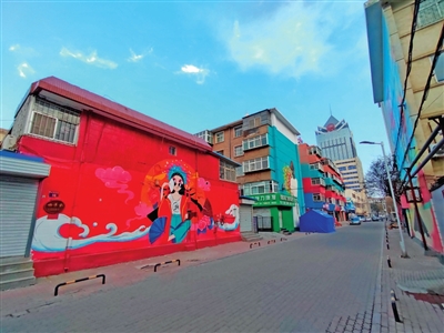 除了火紅的色彩外,巷子兩側老居民樓的外墻上,還繪了藍色的熊貓、橘紅的鹿、黃色的長頸鹿和航天科幻作品,以及上世紀七八十年代的理發(fā)店、小賣部。整條巷子看上去色彩斑斕。常住于此的市民韓巍東說,多年來,這條巷子給他的感覺是破舊、灰色的,但去年的這些改變,讓他日日走過的老巷,變得充滿活力和生機,住在這里的人們,臉上也多了幾分笑意。