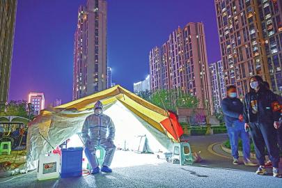 小區(qū)防疫守護人24小時不間斷傳遞溫暖。(王鋒攝)