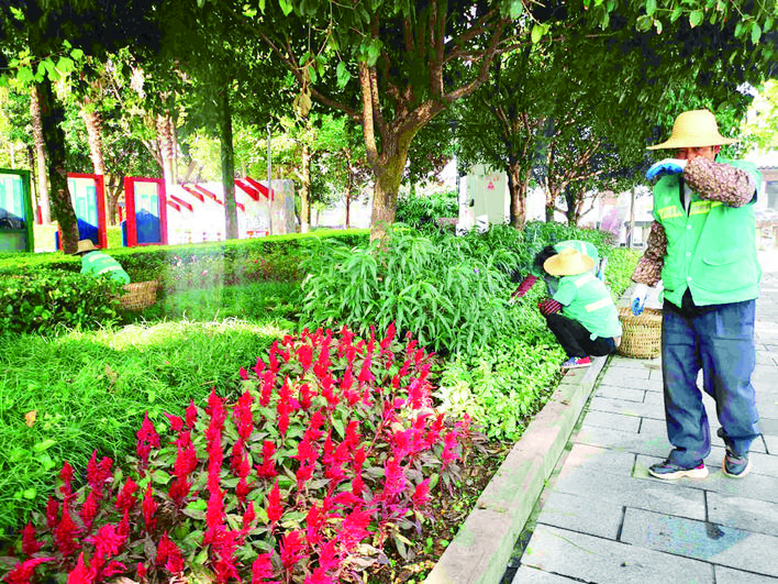今夏高溫伏旱,城區(qū)不少花木受損,園林工人趕在旅游節(jié)前及時(shí)補(bǔ)植、補(bǔ)栽各類喬、灌木50余萬株,更換和布置鮮花70余萬盆,在高鐵北站及貴賓通道補(bǔ)植廣玉蘭200余株,完成機(jī)場、高鐵站、重要入城大道綜合整治。目前濱江沿線三角梅、城區(qū)灌木綠籬生長較好。