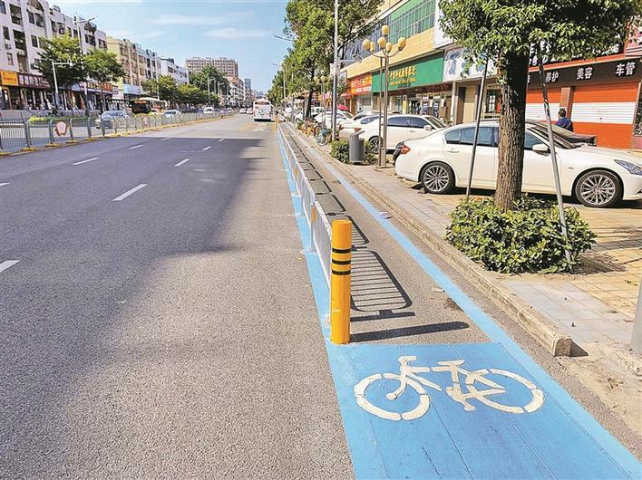 大浪南路“機(jī)非共板+護(hù)欄隔離”非機(jī)動(dòng)車道。 深圳商報(bào)記者 廖萬(wàn)育 通訊員 葉振峰 攝