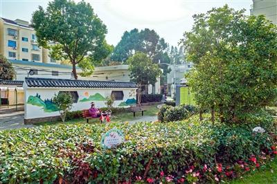 “微更新90%的內(nèi)容,都是居民自己完成的?!睘轫椖刻峁I(yè)藝術(shù)支持的王翔威介紹,設(shè)計師經(jīng)與居民討論確定喜愛的江南風(fēng)格圖畫,并在墻上用鉛筆打稿,隨后由“香楠路家園守護隊”及其他居民耗時2周時間,完成全部墻繪上色。此外,居民文藝骨干還發(fā)揮主觀能動性,在廣場正中一座小亭子的立柱上,添上內(nèi)容為“露潤香園浮瑞色 霜含雅韻掛繁英”的對聯(lián),使環(huán)境再添幾分“文氣”。長廊、粉墻、拱門,墻上的“小橋流水”,外加紅杏樹、柳樹、風(fēng)信子等景致,讓人仿佛“誤入”一座簡約版的江南園林。