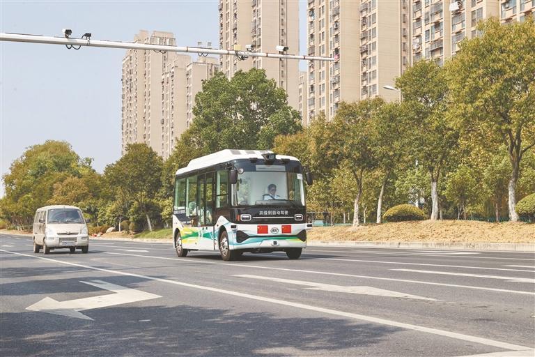安徽首條5G+C-V2X自動駕駛公交體驗線“試跑”。王嫣然 攝