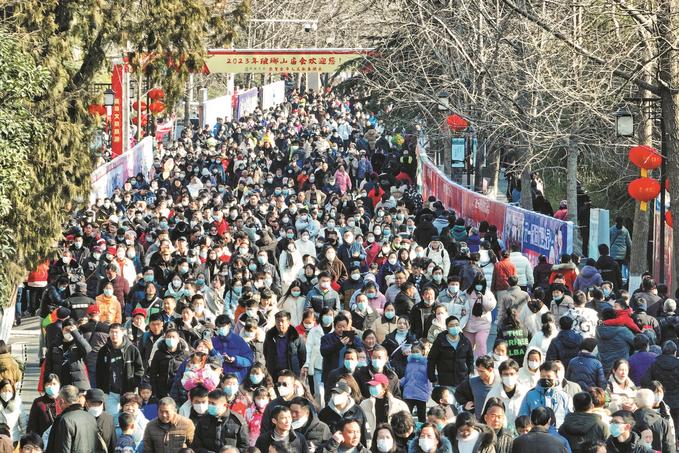 瑯琊山北門(mén),前來(lái)趕廟會(huì)的游客絡(luò)繹不絕,人山人海。 計(jì)成軍 徐 浩 攝