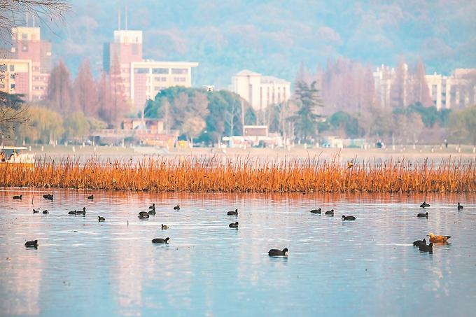 “西寧村濕地不少植被沒有過多人工維護(hù),蘆葦蕩夏綠秋黃,按自然規(guī)律生長更美。”西寧村工作人員張惠告訴記者,“但眼下變化肉眼可見,魚和飛鳥變多了?!苯陙?,類似操作在南京不少濕地進(jìn)行著。紅山森林動(dòng)物園北門湖,岸邊草坪上留出一個(gè)不打草的條帶,留出半個(gè)湖不打撈水草;玄武湖西北角出水口區(qū)域,留出3座不被人為干擾的小島;經(jīng)過23年“放養(yǎng)”,南京長江新濟(jì)洲國家濕地公園保育區(qū)幾乎恢復(fù)大自然最原始的樣貌……