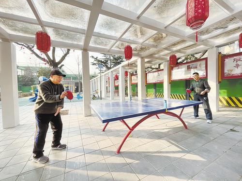 近日,在路北區(qū)團結(jié)里社區(qū),居民正在打乒乓球。記者 師源 攝