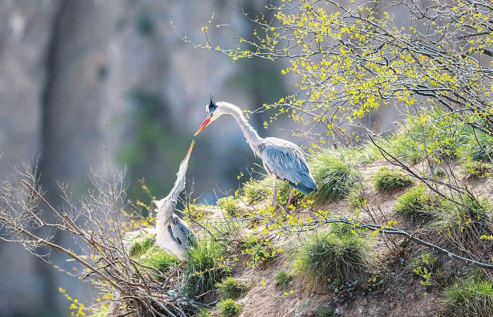 4月6日,平陸縣好漢坡黃河岸邊的懸崖峭壁上,蒼鷺在此處棲息、繁衍。近年來,運城市圍繞黃河流域生態(tài)保護和高質量發(fā)展,多措并舉實施水土保持工程和入黃水污染治理,極大地改善提升了當?shù)攸S河沿線生態(tài)環(huán)境,吸引了眾多野生鳥類來此棲息繁衍,生物多樣性不斷豐富。(金玉敏)