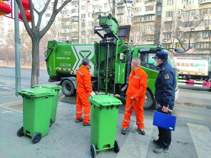 為全面推進(jìn)轄區(qū)垃圾分類宣傳,給居民營(yíng)造一個(gè)美好的生活環(huán)境,近日,北京市石景山區(qū)金頂街街道綜合行政執(zhí)法隊(duì)開展垃圾分類專項(xiàng)執(zhí)法行動(dòng),聚焦“產(chǎn)生-運(yùn)輸-消納”全鏈條,加強(qiáng)生活垃圾綜合治理。該隊(duì)通過(guò)分組包片、一店多查的方式,加大轄區(qū)商戶檢查力度。圖為執(zhí)法人員正在檢查生活垃圾清運(yùn)情況。(荊景)