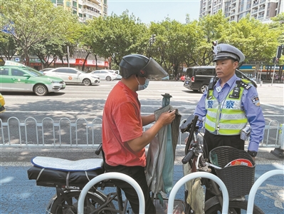 交警查處不規(guī)范行駛的電動(dòng)自行車車主