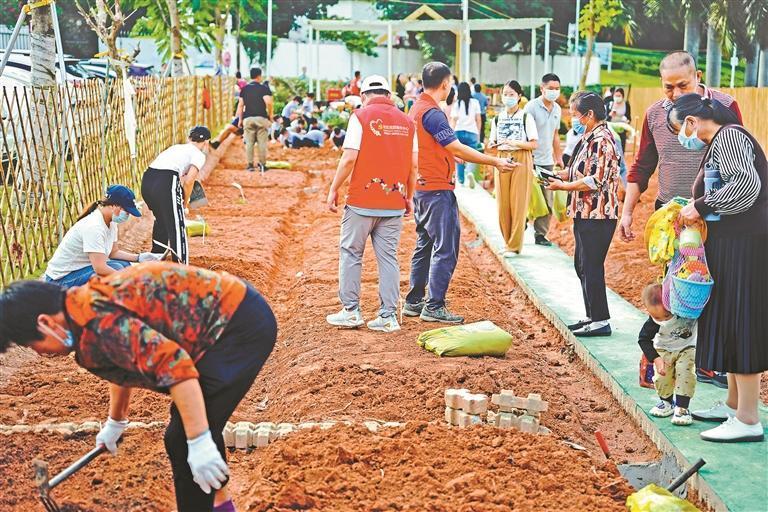 市民參與建設龍華區(qū)幸福農場共建花園。