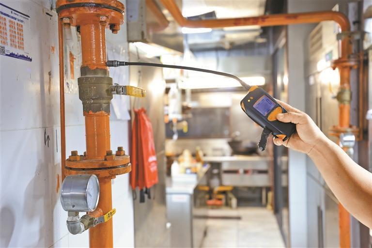 “檢查的時候,我們主要看看燃?xì)夤艿?、燃?xì)庠O(shè)備、用氣設(shè)備及附屬設(shè)施等是否腐蝕損壞,再用燃?xì)庑孤z測儀進行泄漏檢測?!北R佑發(fā)解釋。
