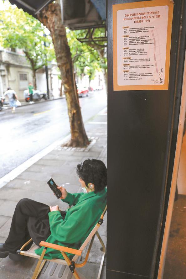 走在這條路上,你會(huì)注意到,不少店鋪都將圍墻向里退界,借墻體“擠”出幾個(gè)戶外卡座;你也會(huì)注意到,很多商戶墻上,貼著“門責(zé)制”自律規(guī)約二十條,對衛(wèi)生、安全和規(guī)范經(jīng)營等作出承諾。政府部門希望,通過“最小治理單元”的自治,引導(dǎo)商戶管理好自家“一畝三分田”,并增加商戶今后對于街區(qū)各項(xiàng)事務(wù)的參與感和話事權(quán)。