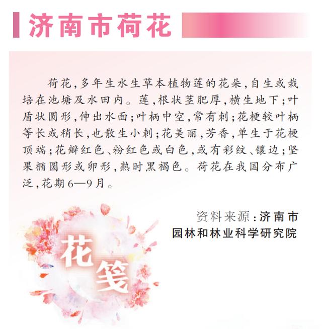 1986年,濟(jì)南市將荷花定為市花。荷花不僅以明艷色彩、淡淡香氣深入濟(jì)南人心中,更以高潔優(yōu)雅的品格,融入城市氣質(zhì),成為獨(dú)特的城市標(biāo)識。