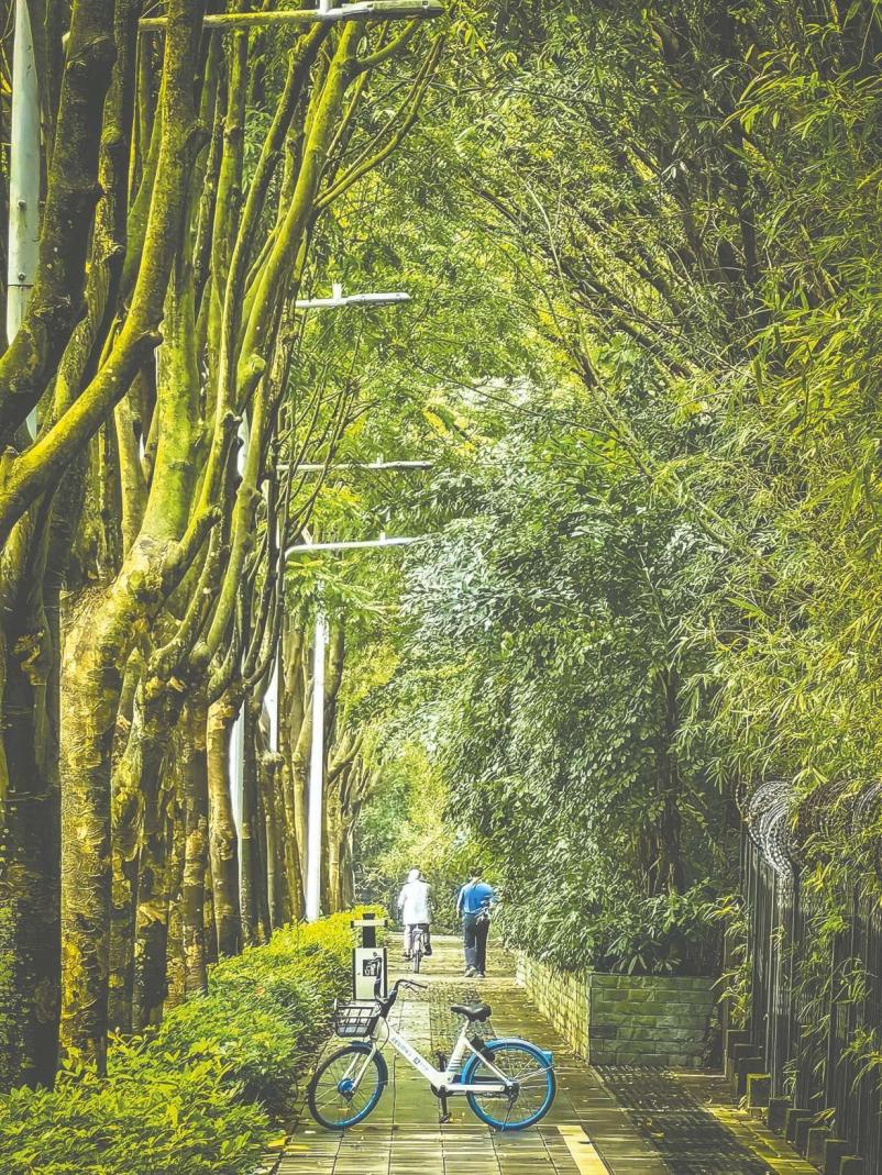 碧湖路上綠樹(shù)遮天防曬。記者 梁楓 攝