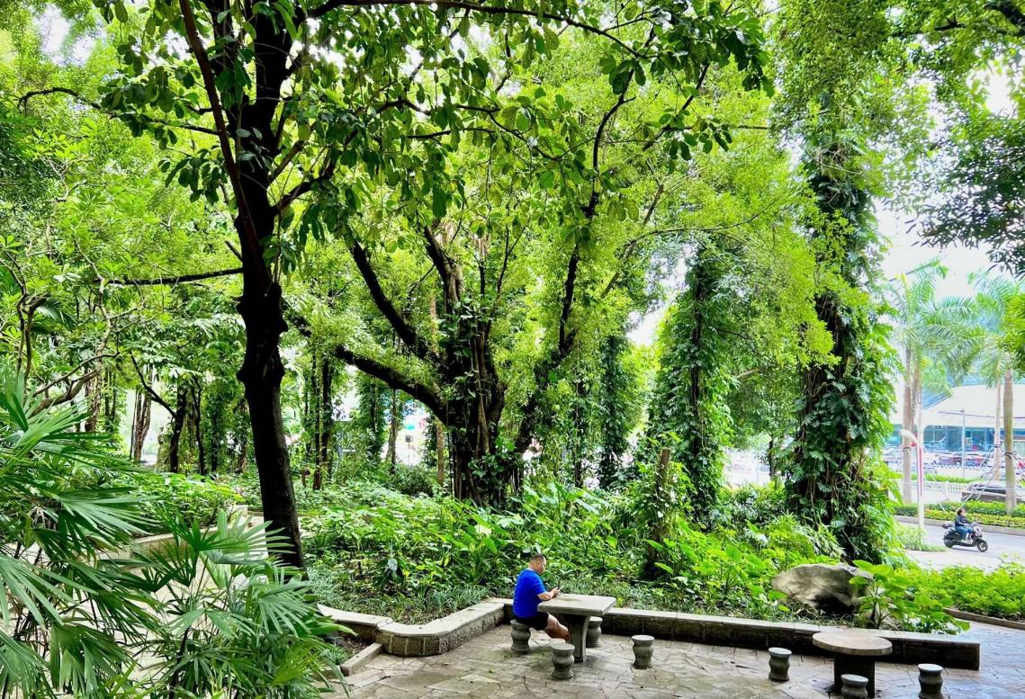民族大道古城路口附近的街邊小公園,熱帶雨林植物錯(cuò)落有致。記者 潘浩 攝