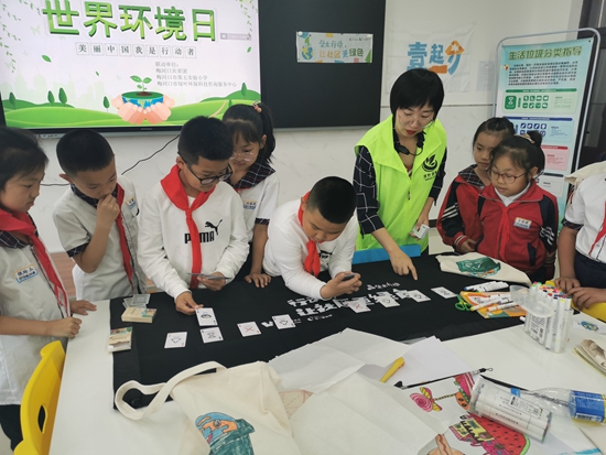 環(huán)保創(chuàng)業(yè)者盧慧迪用環(huán)保宣傳撲克給孩子們講垃圾分類常識。受訪者供圖