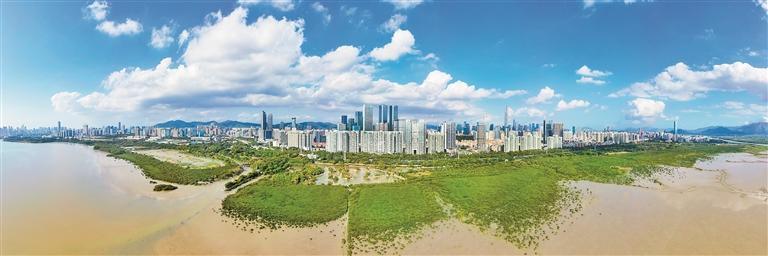 金秋時(shí)節(jié),大鵬東涌紅樹林濕地公園里海風(fēng)輕拂,山海之間,不時(shí)有騎行愛好者穿梭于綠道之上;沿著海岸線一路向東,抵達(dá)深圳灣紅樹林海濱生態(tài)公園,極目遠(yuǎn)望,摩天高樓鋪滿眼簾,科技與繁忙的氣息充斥著每個(gè)角落。