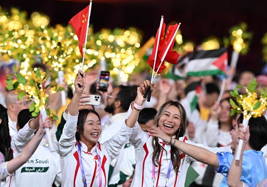 10月8日,中國運(yùn)動員在閉幕式上。新華社記者 程敏/攝