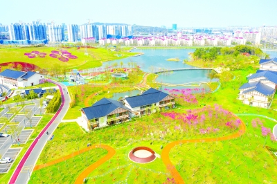 2020年,江北新區(qū)圍繞長江大保護(hù)、水環(huán)境提升的建設(shè)原則,對原有湖區(qū)進(jìn)行清淤和沖洗,并通過“拆、清、治、建、擴(kuò)、引、修”等措施,拆除城中村、清理各類垃圾、種植水生植物……從而徹底改善了湖區(qū)水質(zhì),打造富有特色、多樣化、親水性的公園景觀水系。2021年,桃湖公園正式對外迎客,新栽種的75個(gè)桃樹品種,讓這里成為南京最大的桃花觀賞基地,搭配原有植物,桃湖公園隨處可見喬木、灌木、草坪,到處都是大自然的氣息。如今,桃湖公園已成為當(dāng)?shù)鼐用裨诩议T口休閑游玩、鍛煉身體的一處絕佳場所。