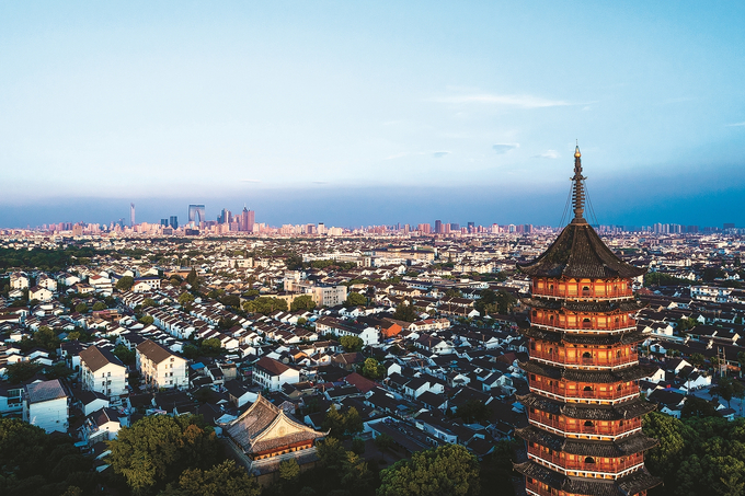 蘇州城北寺塔—東方之門“雙面繡”。 (蘇州市自然資源和規(guī)劃局供圖)