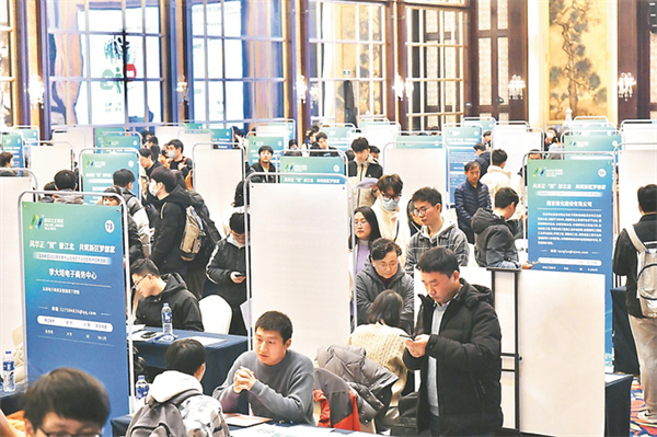 11月30日,“風華正‘貿’聚江北 共筑新區(qū)夢想家”南京江北新區(qū)2023年冬季就業(yè)促進交流論壇暨專場招聘活動成功舉辦,80多家企業(yè)提供1200多個就業(yè)崗位。新區(qū)就管中心的工作人員還在網絡平臺同步直播,累計吸引3.8萬人次觀看。(記者 范俊彥 攝)