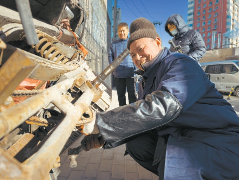 萬泉莊南社區(qū),修車師傅幫居民維修車輛,為大家提供暖心的便民服務??茕瓟z