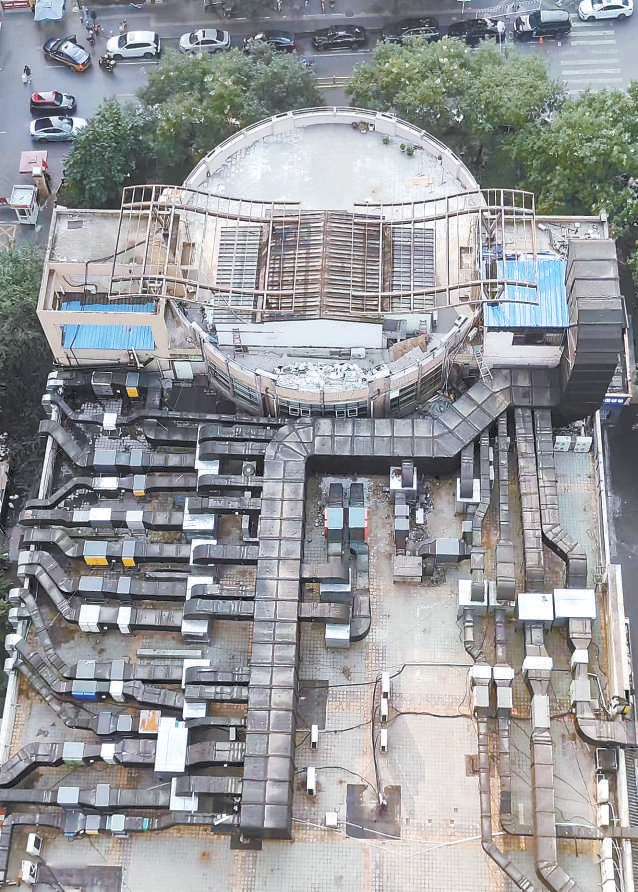 排煙管道、空調(diào)室外機……改造前,各類與餐飲企業(yè)相關的設備設施在百環(huán)家園18號樓西側(cè)商務小樓的樓頂散亂排布。