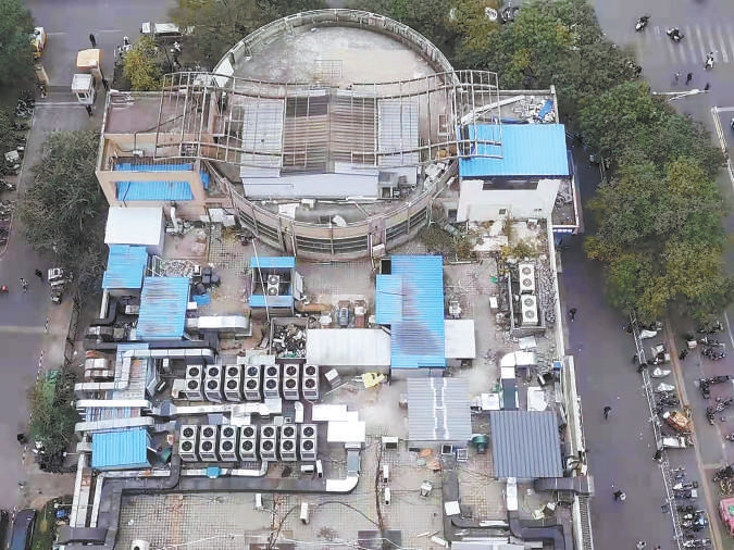 11月30日,記者來到百環(huán)家園18號樓,從居民樓向西俯瞰,商務小樓上雜亂的管道和設備排布已經(jīng)有了明顯改觀。