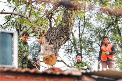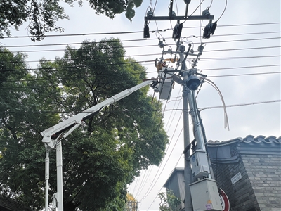 還需要準(zhǔn)備什么?需要將樹(shù)冠纏繞著的高壓線斷電,需要保證與永恒胡同共用線路的醫(yī)院等單位在斷電時(shí)安全過(guò)渡……