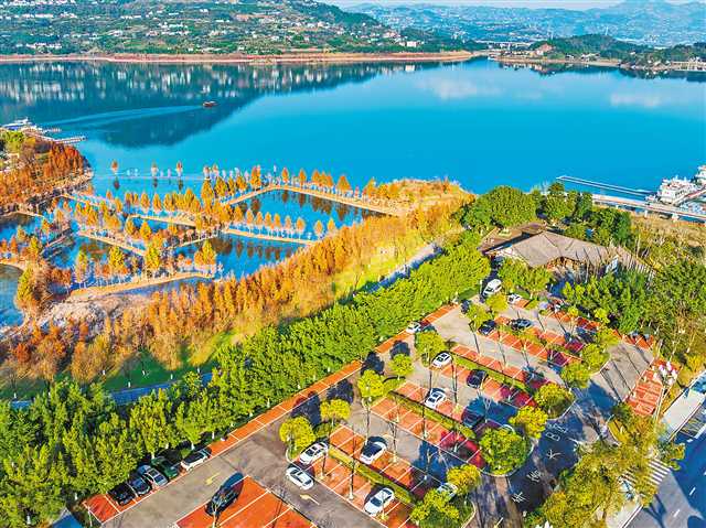 1月4日,開州區(qū)文峰街道,環(huán)境優(yōu)美又方便實用的濱湖停車場。