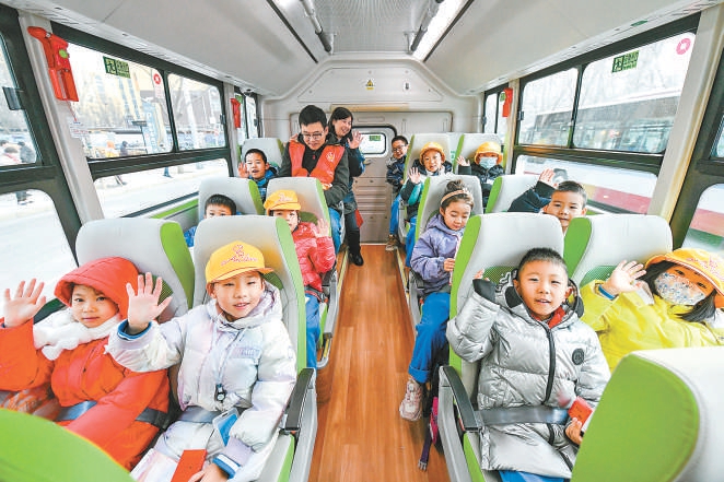 這16名小乘客是北大附中石景山學(xué)校一年級學(xué)生?!皩W(xué)校西黃村新址還未建成,目前一年級在金頂街小學(xué)借址辦學(xué)。因此,對于家住西黃村附近的部分學(xué)生來說,上下學(xué)接送不太方便?!备毙iL張結(jié)實介紹,考慮到“小豆包”年紀(jì)小,通學(xué)車上除了公交乘務(wù)員,每天還有教師志愿者全程跟車。